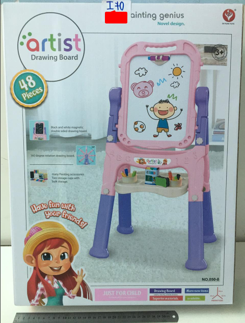 Gồm Bảng tập vẽ cho bé có 2 mặt, 1 mặt bảng đen, 1 mặt bảng trắng, có chân đứng, có thể quay 360 độ một cách dễ dàng.